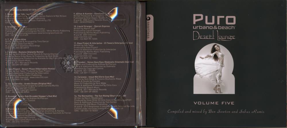 CD1 (Dia): 01. Ranu Raraku - Puro Desert Sunrise (1:23) 02. Xplore - Blue Velvet (5:31) 03. Monodeluxe - You Make Delight (6:39) 04. Xplore - Rainy Day Coffee (4:11) 05. Monodeluxe feat. Paola - You Know (4:56) 06. Rhitma Feat. Nica Brooke - Tell Me Why (4:27) 07. Tomato Jaws - Be With Me (5:02) 08. Deep Collective - Lies (4:58) 09. Vision Factory - Lovin' Music (Justin Le Mar Remix) (5:13) 10. The Return - Bliss (4:31) 11. Ranu Raraku - THC (2:23) 12. Glide & Swerve - Here & Now (2:56) 13. Le Garde - Wake up Darling (3:14) 14. Glide & Swerve - Pure (7:43) 15. Al-Pha-X - Blue Love (4:47) CD2 (Noche): 01. Pashka feat. Ljeoma - Island Breeze (Trentemoller Remix) (6:10) 02. Joe Pettersen - Heart and Soul (5:50) 03. Nufrequency feat. Shara Nelson - Go That Deep (5:04) 04. Sebastian Davidson - Furthest Drive Home (5:38) 05. Mike Acetate - Elevate (Shur-I-Kan vs. Milton Jackson Remix) (5:07) 06. Osbourne - Ruling (Shur-I-Kan Remix) (5:08) 07. Jazzloungerz & Headtrip feat. Lu Chase - Loveblind (Greg Stainer Piano Mix) (5:22) 08. Skylark - Too Much Information (Manuel Tur Remix) (6:29) 09. Osamu M & Satoshi Fumi - Everything (Francois Dubois Beatport 500 Downloads Remix) (6:36) 10. Physics - Hold On (Word of Mouth Remix) (6:21) 11. Marc Romboy - Elif (Jimpster Remix) (5:37) 12. Chic Miniature - Escandolo (7:04)