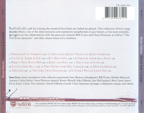 Жанр: Brazilian Jazz, Cool, Bossa Nova, Post-Bop Носитель: CD (Studio, Remaster, Compilation, Archival, Live, Reissue) Страна-производитель диска (релиза): USA Год издания оригинала: 1962 Год переиздания: 2008 Издатель (лейбл): Verve Серия: Verve Originals Номер по каталогу: 001117102 Дата / место записи: in New York City, August 27 & 28, 1962. Источник (релизер): Моя коллекция, мой рип Трэклист: