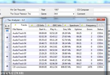 REM GENRE Jazz REM DATE 1997 REM DISCID 85096C0A REM COMMENT "ExactAudioCopy v1.0b3" CATALOG 0602498840429 PERFORMER "The Oscar Peterson Trio" TITLE "We Get Requests" FILE "01 - Corcovado (Quiet Nights Of Quiet Stars).wav" WAVE TRACK 01 AUDIO TITLE "Corcovado (Quiet Nights Of Quiet Stars)" PERFORMER "The Oscar Peterson Trio" ISRC USF096500120 INDEX 01 00:00:00 INDEX 02 02:49:05 TRACK 02 AUDIO TITLE "The Days Of Wine And Roses" PERFORMER "The Oscar Peterson Trio" ISRC USF096500130 INDEX 00 02:49:05 FILE "02 - The Days Of Wine And Roses.wav" WAVE INDEX 01 00:00:00 TRACK 03 AUDIO TITLE "My One And Only Love" PERFORMER "The Oscar Peterson Trio" ISRC USF096500140 INDEX 00 02:40:10 FILE "03 - My One And Only Love.wav" WAVE INDEX 01 00:00:00 TRACK 04 AUDIO TITLE "People" PERFORMER "The Oscar Peterson Trio" ISRC USF096500150 INDEX 00 05:08:12 FILE "04 - People.wav" WAVE INDEX 01 00:00:00 TRACK 05 AUDIO TITLE "Have You Met Miss Jones?" PERFORMER "The Oscar Peterson Trio" ISRC USF096500160 INDEX 00 03:30:50 FILE "05 - Have You Met Miss Jones.wav" WAVE INDEX 01 00:00:00 TRACK 06 AUDIO TITLE "You Look Good To Me" PERFORMER "The Oscar Peterson Trio" ISRC USF096500170 INDEX 00 04:10:64 FILE "06 - You Look Good To Me.wav" WAVE INDEX 01 00:00:00 TRACK 07 AUDIO TITLE "The Girl From Ipanema" PERFORMER "The Oscar Peterson Trio" ISRC USF096500180 INDEX 00 04:49:17 FILE "07 - The Girl From Ipanema.wav" WAVE INDEX 01 00:00:00 TRACK 08 AUDIO TITLE "D & E" PERFORMER "The Oscar Peterson Trio" ISRC USF096500190 INDEX 00 03:51:62 FILE "08 - D & E.wav" WAVE INDEX 01 00:00:00 TRACK 09 AUDIO TITLE "Time And Again" PERFORMER "The Oscar Peterson Trio" ISRC USF096500200 INDEX 00 05:10:73 FILE "09 - Time And Again.wav" WAVE INDEX 01 00:00:00 INDEX 02 04:38:18 FILE "10 - Goodbye, J.D..wav" WAVE TRACK 10 AUDIO TITLE "Goodbye, J.D." PERFORMER "The Oscar Peterson Trio" ISRC USF096500210 INDEX 01 00:00:00