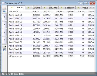[CUETools log; Date: 14.12.2022 14:55:43; Version: 2.1.5] [CTDB TOCID: VGC_mq2oXapOSNeo0AETEkTpLe0-] found. Track | CTDB Status 1 | (652/653) Accurately ripped 2 | (652/653) Accurately ripped 3 | (651/653) Accurately ripped 4 | (650/653) Accurately ripped 5 | (651/653) Accurately ripped 6 | (649/653) Accurately ripped 7 | (650/653) Accurately ripped 8 | (651/653) Accurately ripped 9 | (650/653) Accurately ripped 10 | (651/653) Accurately ripped [AccurateRip ID: 000ea0ad-00777b39-85096c0a] found. Track [ CRC | V2 ] Status 01 [3b7817c9|e4fabbce] (085+200/325) Accurately ripped 02 [c4d0f80b|f9c2004c] (085+200/325) Accurately ripped 03 [34b37ae0|5a16c1f3] (085+200/325) Accurately ripped 04 [0960b072|987c93f3] (085+200/325) Accurately ripped 05 [f76d0f74|7611a834] (085+200/325) Accurately ripped 06 [2613e69f|3c2c165a] (084+200/325) Accurately ripped 07 [7519b3ef|4e17ddba] (084+200/324) Accurately ripped 08 [0ca5fcd0|c3591742] (085+200/325) Accurately ripped 09 [f319e461|74c350fd] (084+200/324) Accurately ripped 10 [5530f7ee|d7c67183] (084+200/324) Accurately ripped Offsetted by -2179: 01 [b9079d1c] (002/325) Accurately ripped 02 [51c85181] (002/325) Accurately ripped 03 [c24b7431] (002/325) Accurately ripped 04 [24c821d6] (002/325) Accurately ripped 05 [53317e4c] (002/325) Accurately ripped 06 [c005c5da] (002/325) Accurately ripped 07 [9b859376] (002/324) Accurately ripped 08 [8ce619eb] (002/325) Accurately ripped 09 [d5d58366] (002/324) Accurately ripped 10 [2295c9df] (002/324) Accurately ripped Offsetted by -1545: 01 [72c74c42] (002/325) Accurately ripped 02 [a9c4056d] (002/325) Accurately ripped 03 [fe9a9853] (002/325) Accurately ripped 04 [44fcfa9e] (002/325) Accurately ripped 05 [eaf3dffc] (002/325) Accurately ripped 06 [fa07c4d0] (002/325) Accurately ripped 07 [00c6a504] (002/324) Accurately ripped 08 [de7a64a1] (002/325) Accurately ripped 09 [6fe9e0f0] (002/324) Accurately ripped 10 [b1d68f41] (002/324) Accurately ripped Offsetted by 10: 01 [7d63b25f] (002/325) Accurately ripped 02 [f50b0bd7] (002/325) Accurately ripped 03 [8cdeb8d2] (002/325) Accurately ripped 04 [6c68ca7a] (002/325) Accurately ripped 05 [332840a4] (002/325) Accurately ripped 06 [9f521d85] (002/325) Accurately ripped 07 [b74d9b2d] (002/324) Accurately ripped 08 [f417c576] (002/325) Accurately ripped 09 [129a9dfb] (002/324) Accurately ripped 10 [05e2d920] (002/324) Accurately ripped Offsetted by -71: 01 [cdd5b4a0] (000/325) No match (V2 was not tested) 02 [d4ce3849] (000/325) No match (V2 was not tested) 03 [291a0fdd] (000/325) No match (V2 was not tested) 04 [e3da5e06] (000/325) No match (V2 was not tested) 05 [1c22656c] (000/325) No match (V2 was not tested) 06 [fc73c73e] (000/325) No match (V2 was not tested) 07 [1f0f96ea] (000/324) No match (V2 was not tested) 08 [216485cf] (000/325) No match (V2 was not tested) 09 [603b2502] (000/324) No match (V2 was not tested) 10 [3b75390b] (000/324) No match (V2 was not tested) Offsetted by -66: 01 [eecb81eb] (000/325) No match (V2 was not tested) 02 [eceb422f] (000/325) No match (V2 was not tested) 03 [552faed6] (000/325) No match (V2 was not tested) 04 [155e6b0a] (000/325) No match (V2 was not tested) 05 [39fffe04] (000/325) No match (V2 was not tested) 06 [3912e2b1] (000/325) No match (V2 was not tested) 07 [c0298a89] (000/324) No match (V2 was not tested) 08 [151d6a22] (000/325) No match (V2 was not tested) 09 [effb81cf] (000/324) No match (V2 was not tested) 10 [93ce29a4] (000/324) No match (V2 was not tested) Offsetted by -12: 01 [b92a2b15] (000/325) No match (V2 was not tested) 02 [57be79e3] (000/325) No match (V2 was not tested) 03 [97b2ca24] (000/325) No match (V2 was not tested) 04 [c5bd5e02] (000/325) No match (V2 was not tested) 05 [49593ad4] (000/325) No match (V2 was not tested) 06 [fafc718b] (000/325) No match (V2 was not tested) 07 [25a8380b] (000/324) No match (V2 was not tested) 08 [f6ea3f3c] (000/325) No match (V2 was not tested) 09 [66e5d275] (000/324) No match (V2 was not tested) 10 [1ac1e9b2] (000/324) No match (V2 was not tested) Track Peak [ CRC32 ] [W/O NULL] [ LOG ] -- 100,0 [F19FF27E] [FB261C05] 01 99,9 [4B45E3FC] [D7A54012] CRC32 02 100,0 [361FC1F0] [D03B15C7] CRC32 03 80,7 [58DB5D85] [BB37F68B] CRC32 04 99,9 [06D0E655] [53C24210] CRC32 05 99,9 [EAED221C] [073CB387] CRC32 06 100,0 [A873325C] [1745A1B2] CRC32 07 99,9 [194E44C0] [1114A713] CRC32 08 100,0 [39D27975] [0FC00711] CRC32 09 64,4 [F5BCDD1A] [F16CEF24] CRC32 10 100,0 [C8F752DF] [C7B6FFF1] CRC32