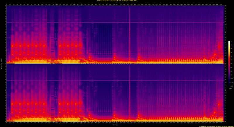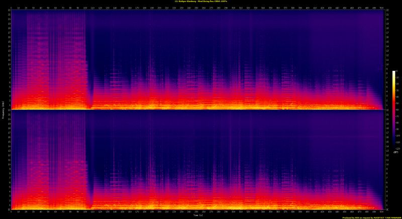foobar2000 1.6.16 / Dynamic Range Meter 1.1.1 log date: 2026-03-12 20:03:24 -------------------------------------------------------------------------------- Analyzed: Achillea / Sky Space Bar I (1-2) Art Of Infinity / Sky Space Bar I (3-6) Bernd Scholl & Gleisberg / Sky Space Bar I (7) Bernd Scholl / Sky Space Bar I (8-9) Deep Imagination / Sky Space Bar I (10) Peter Mergener / Sky Space Bar I (11) Rüdiger Gleisberg / Sky Space Bar I (12) -------------------------------------------------------------------------------- DR Peak RMS Duration Track -------------------------------------------------------------------------------- DR15 -4.61 dB -23.68 dB 0:59 02-Achillea - Prelude DR9 0.00 dB -12.43 dB 6:00 08-Ragnarok - Twilight of the Gods DR10 -0.36 dB -12.59 dB 5:44 01-Endless Future DR8 -1.67 dB -11.41 dB 5:13 04-Cosmic Rain DR8 -1.47 dB -12.16 dB 5:56 06-Passing the Pulsar DR7 0.00 dB -8.44 dB 10:59 10-Drift Upon the Sky DR11 -2.47 dB -17.60 dB 6:06 07-Culture and Spirit DR12 -2.25 dB -17.03 dB 6:20 03-Road to the Stars, Part I DR10 -2.70 dB -17.46 dB 5:46 09-Fields of Eternity DR10 -0.10 dB -13.33 dB 10:10 11-Awareness Part 4 - Tradition DR10 -0.10 dB -12.03 dB 3:59 05-Behind the Moon DR12 -1.25 dB -18.54 dB 8:25 12-Mind Diving -------------------------------------------------------------------------------- Number of tracks: 12 Official DR value: DR10 Samplerate: 44100 Hz Channels: 2 Bits per sample: 16 Bitrate: 571 kbps Codec: FLAC ================================================================================