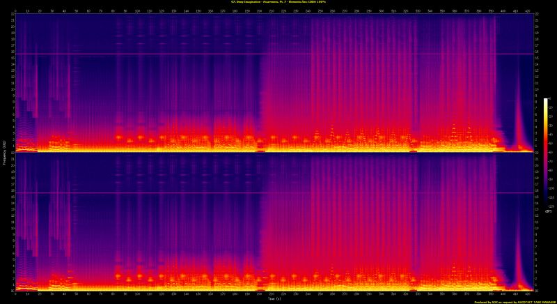 foobar2000 1.6.16 / Dynamic Range Meter 1.1.1 log date: 2026-03-12 20:03:37 -------------------------------------------------------------------------------- Analyzed: Achillea / Sky Space Bar II (1) Art Of Infinity / Sky Space Bar II (2-4) Bernd Scholl / Sky Space Bar II (5) Deep Imagination / Sky Space Bar II (6-8) Joe Weineck / Sky Space Bar II (9) Karmacosmic / Sky Space Bar II (10) Peter Mergener / Sky Space Bar II (11) Rüdiger Gleisberg / Sky Space Bar II (12-15) -------------------------------------------------------------------------------- DR Peak RMS Duration Track -------------------------------------------------------------------------------- DR7 -1.79 dB -11.36 dB 4:28 12-The Seeress Prophecy (Daydreaming) DR9 -0.10 dB -11.75 dB 7:49 05-Zur zweiten Welt (Eclipsed-Edit) DR10 0.00 dB -12.06 dB 4:09 09-Utopia (UK-Edit) DR7 -3.85 dB -12.87 dB 4:36 13-Trimelar Starflight (Sky Space Bar-Edit) DR11 -3.15 dB -17.73 dB 3:42 08-Heaven Can Wait DR9 -1.16 dB -12.45 dB 7:05 07-Awareness, Pt. 7 - Elements DR6 -0.09 dB -7.50 dB 4:45 10-Paradise in Space (EP-Version) DR9 -0.10 dB -11.82 dB 8:15 15-Planetary System DR10 -0.10 dB -12.11 dB 5:48 02-Wonderful DR11 -2.78 dB -17.27 dB 4:33 06-Compassion and Devotion DR9 0.00 dB -12.16 dB 7:57 03-Hycean Planet DR12 -2.31 dB -17.77 dB 1:39 01-Lost in Thoughts 1 DR11 -0.45 dB -15.21 dB 1:25 04-Lost in Thoughts 2 DR8 -3.54 dB -13.28 dB 3:06 11-Floating in Your Soul DR9 0.00 dB -15.05 dB 1:26 14-Marianna's Conflict -------------------------------------------------------------------------------- Number of tracks: 15 Official DR value: DR9 Samplerate: 44100 Hz Channels: 2 Bits per sample: 16 Bitrate: 465 kbps Codec: FLAC ================================================================================