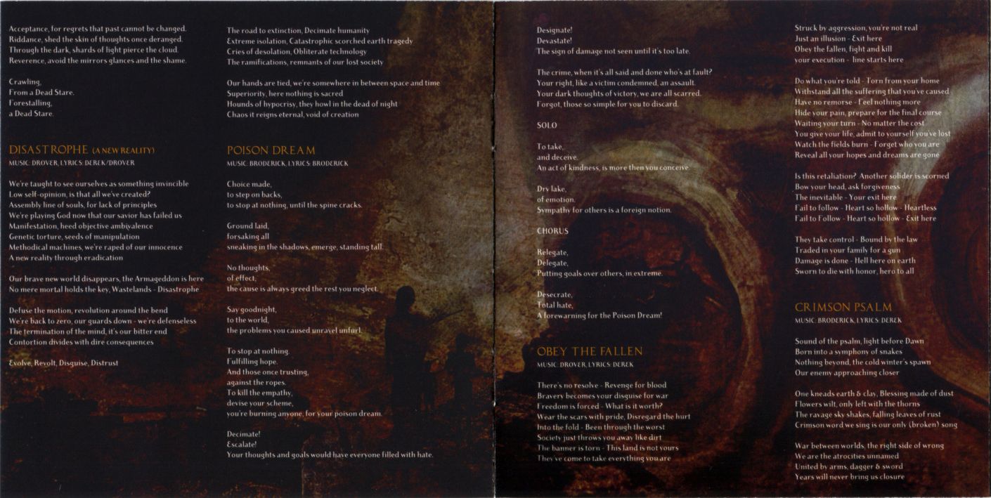 Жанр: ThrashСтрана: US Год издания: 2015 Формат издания: CD, Album Издательство: Metal Blade Records Каталоговый номер: 3984-15403-2 Аудиокодек: FLAC (*.flac) Формат аудиофайлов: tracks+.cue Продолжительность: 47:19 Источник материала: рип с диска из собственной коллекции Наличие полиграфии: Да (*.png) Треклист: 01. Act Of Defiance - Throwback (5:33) 02. Act Of Defiance - Legion Of Lies (3:48) 03. Act Of Defiance - Thy Lord Belial (3:37) 04. Act Of Defiance - Refrain And Re-Fracture (5:55) 05. Act Of Defiance - Dead Stare (4:32) 06. Act Of Defiance - Disastrophe (A New Reality) (3:25) 07. Act Of Defiance - Poison Dream (5:21) 08. Act Of Defiance - Obey The Fallen (4:53) 09. Act Of Defiance - Crimson Psalm (5:09) 10. Act Of Defiance - Birth And The Burial (5:07) Exact Audio Copy V1.0 beta 4 from 7. December 2014 REM GENRE Metal Для того, чтобы скачать .torrent Вам необходимо зарегистрироваться |